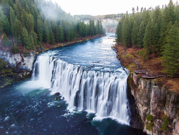 At Upper Mesa Falls, a thunderous curtain of water – as tall as a 10-story building – pours over remnants of an ancient volcanic super-eruption. A mile south, Lower Mesa Falls repeats the performance. The Mesa Falls Visitor Center is open daily in the summer and an accessible trail and boardwalk provide spectacular views of both falls.